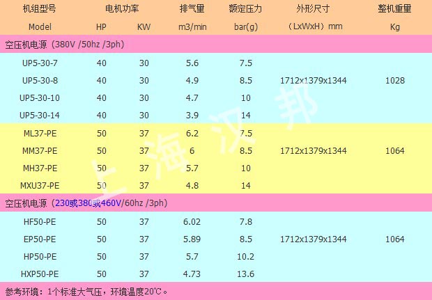英格索兰UP(30—37kW)系列微油螺杆空压机供货范围: