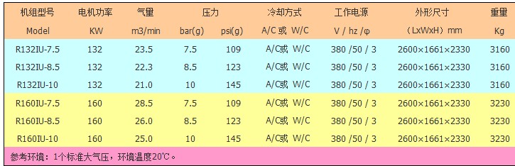 英格索兰R系列微油螺杆空压机(132—160kW)质量保证:质保期12个月。